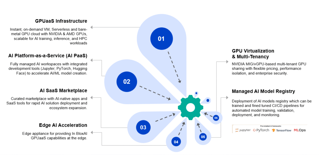 It’s AI Platform-as-a-Service includes an AI SaaS Marketplace, Edge AI Acceleration, Agentic Workflow Orchestration, AI-Native Observability, and Managed AI Model Registry. BloxAI offers flexible cloud, hybrid, and on-prem deployments with 10x faster AI time-to-market, 99.999% uptime, and up to 30% cost savings—empowering scalable, secure AI innovation.